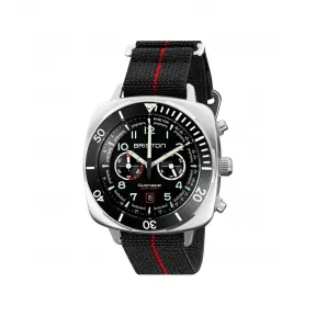 For those who love to get away from it all, Briston offers you this watch for men: the Clubmaster Outdoor.True to the square-cambered shape of the Clubmaster line, this watch is made for the outdoor and the adventurers:robust case in 44 MM and brushed steel,Chronograph date function with 2 counters (minutes and 24 hours),unidirectional steel outer bezel with 60 minute scale,inner ring with tachymetric scale to calculate the speed of a moving body,luminescent inserts with natural Superluminova®,water-resistant to 100 meters (10 ATM).The Clubmaster Outdoor is also equipped with an elastic fabric strap made from parachute webbing that completes its sporty look and unique character.技术特性参考:23144.S.O.1.EB|材料表壳:拉丝316L不锈钢|饰面:银色|表壳大小:44 x 44 MM|机芯:石英 Miyota OS21|模型 / 功能:计时码表日期 2个计数器和测速仪刻度|动力储存:3至5年|表盘尺寸:32.5 MM|表盘颜色:哑光黑|厚度:13.35 MM|玻璃:超耐磨矿物玻璃 – 3.30 MM厚|指针:指针采用白色超夜光 Superluminova®技术|防水深度:100 米 / 10 ATM|表带:松紧带织物可更换|表带长度:140 MM|表带宽度:20 MM|国际联保:2 年|