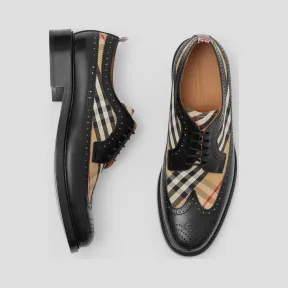博百利/Burberry 男士 镂空雕花装饰 Vintage 格纹拼皮革德比鞋 (黑色 / 典藏米色) 80162581 的视频