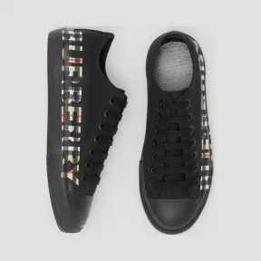 博百利/Burberry 女士 Vintage 格纹徽标印花棉质嘎巴甸运动鞋 (黑色 / 典藏米色) 80193301 的视频