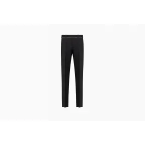 这款黑色羊毛帆布和马海毛直筒长裤以腰部的“Christian Dior Atelier”饰带为特色。这一细节设计向巴黎马里涅路3号(3 rue de Marignan)Dior Homme工坊的精湛工艺致敬,彰显时尚优雅风格。