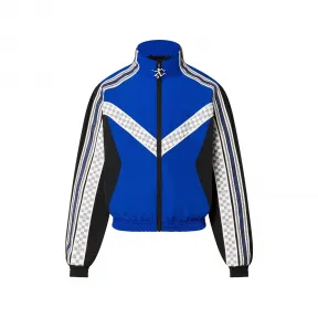 这件图形作品为运动服上衣提供了精致的更新。科技面料饰有带有路易威登标志的橡胶条,以及带有压纹效果的 Damier 面板。它采用常规剪裁剪裁,采用滚边细节、插肩袖和带有本季 Dancing Man 拉头的拉链开合。