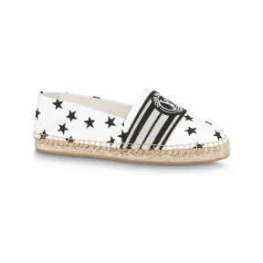 这款Starboard平底草编鞋以帆布重新演绎造型,印有今季的重点星形图案,鞋面饰以带LV Circle刺绣标志的条纹提花丝带。设计取材於经典草编鞋,缀有真正的编织绳索侧底,更添以橡胶鞋底,更经久耐用。