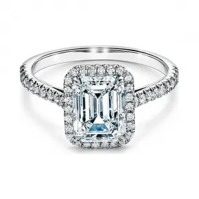 蒂芙尼/Tiffany Tiffany Soleste 系列铂金镶钻戒圈,珠链式边镶钻石环绕祖母绿形切割主钻订婚钻戒。 的视频