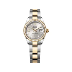 表盘设有18K金底座镶托钻石及镶8颗钻石的18K金罗马数字IX。蚝式系列的许多表盘款式均采用太阳光线效果,折射出淡雅光泽。这种效果需要超卓的刷光技术,打造从表盘中央往外扩展的刻纹。光线沿刻纹分散,营造出隐约而独特的效果,随着手腕摆动展示不同光泽。完成太阳光线效果的工序后,便会通过物理气相沉积法或电镀技术,为表盘添上色彩,最后再以油光漆修饰。表盘设有18K金底座镶托钻石及镶8颗钻石的18K金罗马数字IX。蚝式系列的许多表盘款式均采用太阳光线效果,折射出淡雅光泽。这种效果需要超卓的刷光技术,打造从表盘中央往外扩展的刻纹。 光线沿刻纹分散,营造出隐约而独特的效果,随着手腕摆动展示不同光泽。完成太阳光线效果的工序后,便会通过物理气相沉积法或电镀技术,为表盘添上色彩,最后再以油光漆修饰。|宝石镶嵌工匠,如同雕塑家使用珍贵金属为每颗宝石手工精心打造其镶座。工匠以极其精准的技艺为宝石进行镶嵌,每颗宝石均精确地排列和校准于所属位置,确保牢固地装饰于金或铂金的镶座上。除了对宝石品质的讲究外,劳力士在宝石镶嵌上亦有其他严格的要求,当中包括宝石的高度及其精确排列、方向与位置、镶嵌的规律性、坚固度和比例、以及金属镶座的精致表面修饰。腕表为佩戴者的手腕带来璀璨耀目的点缀。宝石镶嵌工匠,如同雕塑家使用珍贵金属为每颗宝石手工精心打造其镶座。工匠以极其精准的技艺为宝石进行镶嵌,每颗宝石均精确地排列和校准于所属位置,确保牢固地装饰于金或铂金的镶座上。 除了对宝石品质的讲究外,劳力士在宝石镶嵌上亦有其他严格的要求,当中包括宝石的高度及其精确排列、方向与位置、镶嵌的规律性、坚固度和比例、以及金属镶座的精致表面修饰。腕表为佩戴者的手腕带来璀璨耀目的点缀。|金,亮丽高贵,教人着迷。钢,坚固无比,可堪信赖。两者和谐融汇,与其他特性巧妙结合。金钢是劳力士的标志特色,早于1930年代初已配置在劳力士表款之中,至1933年正式注册商标名称。这亦是蚝式恒动系列其中一个显著的特征。金,亮丽高贵,教人着迷。钢,坚固无比,可堪信赖。两者和谐融汇,与其他特性巧妙结合。 金钢是劳力士的标志特色,早于1930年代初已配置在劳力士表款之中,至1933年正式注册商标名称。这亦是蚝式恒动系列其中一个显著的特征。|蚝式(Oyster)表带坚固舒适,集造型、功能、美学及技术于一体。表带配备蚝式带扣,亦配备同样是劳力士独有的易调链节延展系统。佩戴者可运用此劳力士独有的巧妙装置,将表带延长约5 MM,在任何情况下均倍感舒适。蚝式(Oyster)表带坚固舒适,集造型、功能、美学及技术于一体。 表带配备蚝式带扣,亦配备同样是劳力士独有的易调链节延展系统。佩戴者可运用此劳力士独有的巧妙装置,将表带延长约5 MM,在任何情况下均倍感舒适。|小窗凸透镜不仅是劳力士腕表的一大特色,且易于识别。小窗凸透镜的名字源于希腊神话的独眼巨人。此装置将腕表标志的日历显示放大,让人一目了然。一如劳力士腕表的其他特色,小窗凸透镜是多年研发创新的成果,体现品牌力求完善的精神。小窗凸透镜不仅是劳力士腕表的一大特色,且易于识别。 小窗凸透镜的名字源于希腊神话的独眼巨人。此装置将腕表标志的日历显示放大,让人一目了然。一如劳力士腕表的其他特色,小窗凸透镜是多年研发创新的成果,体现品牌力求完善的精神。|新一代2236型自动上链机械机芯全由劳力士研发制造。机芯内置劳力士专利Syloxi硅游丝,确保腕表具有超卓天文台精密时计性能。Syloxi游丝不受磁场干扰,即使面对温度变化,依然极为稳定,其抗震力更比传统游丝高出十倍。其专利几何结构使机芯在任何位置都可保持规律运行。新一代2236型自动上链机械机芯全由劳力士研发制造。机芯内置劳力士专利Syloxi硅游丝,确保腕表具有超卓天文台精密时计性能。 Syloxi游丝不受磁场干扰,即使面对温度变化,依然极为稳定,其抗震力更比传统游丝高出十倍。其专利几何结构使机芯在任何位置都可保持规律运行。 表壳:蚝式,28 MM,钻石、黄金及蚝式钢|蚝式表壳结构:一体成型中层表壳,旋入式底盖及上链表冠|直径:28 MM|材质:黄金钢(蚝式钢与黄金的组合)|外圈:镶钻石|上链表冠:旋入式,双扣锁双重防水系统|镜面:防刮损蓝水晶,小窗凸透镜放大日历|防水深度:防水深达100米/330英尺||机芯机芯:自动上链机械恒动机芯|机芯型号:劳力士2236型机芯|精准:每天平均正负两秒以内(机芯装进表壳后)|功能:中央时、分及秒针;快调瞬跳日历;秒针暂停功能以准确调校时间|游丝摆轮组件:专利几何结构Syloxi硅游丝;高性能Paraflex缓震装置|上链:藉恒动摆陀双向自动上链|动力储备:约55小时||表带表带:蚝式(Oyster),三格实心链节|材质:黄金钢(蚝式钢与黄金的组合)|带扣:摺叠蚝式带扣配5 MM易调链节延展系统||表盘表盘:银色,镶钻石|宝石镶嵌:18K金,镶钻石;18K金罗马数字IX,镶8颗钻石||认证认证:超卓天文台精密时计认证:瑞士天文台认证(COSC)+ 劳力士认证(机芯装进表壳后)||
