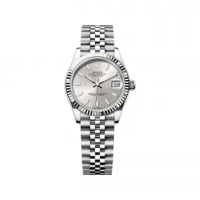 劳力士三角坑纹为品牌腕表的特色。最初,蚝式腕表外圈上的三角坑纹具备实际用途,有助将外圈旋紧固定在表壳上,确保腕表的防水性能。而底盖上可见的坑纹设计亦出于同样目的,并以特定的劳力士工具旋紧于表壳。及后,三角坑纹演变为一项美学设计元素,堪为劳力士的经典特色。时至今日,三角坑纹成为品牌腕表的特色,这款日志型 31的外圈以金制成。劳力士三角坑纹为品牌腕表的特色。最初,蚝式腕表外圈上的三角坑纹具备实际用途,有助将外圈旋紧固定在表壳上,确保腕表的防水性能。 而底盖上可见的坑纹设计亦出于同样目的,并以特定的劳力士工具旋紧于表壳。及后,三角坑纹演变为一项美学设计元素,堪为劳力士的经典特色。时至今日,三角坑纹成为品牌腕表的特色,这款日志型 31的外圈以金制成。|蚝式系列的许多表盘款式均采用太阳光线效果,折射出淡雅光泽。这种效果需要超卓的刷光技术,打造从表盘中央往外扩展的刻纹。光线沿刻纹分散,营造出隐约而独特的效果,随着手腕摆动展示不同光泽。完成太阳光线效果的工序后,便会通过物理气相沉积法或电镀技术,为表盘添上色彩,最后再以油光漆修饰。蚝式系列的许多表盘款式均采用太阳光线效果,折射出淡雅光泽。这种效果需要超卓的刷光技术,打造从表盘中央往外扩展的刻纹。 光线沿刻纹分散,营造出隐约而独特的效果,随着手腕摆动展示不同光泽。完成太阳光线效果的工序后,便会通过物理气相沉积法或电镀技术,为表盘添上色彩,最后再以油光漆修饰。|金,亮丽高贵,教人着迷。钢,坚固无比,可堪信赖。两者和谐融汇,与其他特性巧妙结合。金钢是劳力士的标志特色,早于1930年代初已配置在劳力士表款之中,至1933年正式注册商标名称。这亦是蚝式恒动系列其中一个显著的特征。金,亮丽高贵,教人着迷。钢,坚固无比,可堪信赖。两者和谐融汇,与其他特性巧妙结合。 金钢是劳力士的标志特色,早于1930年代初已配置在劳力士表款之中,至1933年正式注册商标名称。这亦是蚝式恒动系列其中一个显著的特征。|劳力士表带与带扣的设计、开发和生产过程,以及需通过的严格测试均充分应用了先进科技。有如腕表的其他组件,表带与带扣同样会经过专人检视,确保出品美观无瑕。这款灵活舒适的五格链节纪念型(Jubilee)金属表带,特别为1945年面世的蚝式恒动日志型腕表而设,劳力士表带与带扣的设计、开发和生产过程,以及需通过的严格测试均充分应用了先进科技。 有如腕表的其他组件,表带与带扣同样会经过专人检视,确保出品美观无瑕。这款灵活舒适的五格链节纪念型(Jubilee)金属表带,特别为1945年面世的蚝式恒动日志型腕表而设,|小窗凸透镜不仅是劳力士腕表的一大特色,且易于识别。小窗凸透镜的名字源于希腊神话的独眼巨人。此装置将腕表标志的日历显示放大,让人一目了然。一如劳力士腕表的其他特色,小窗凸透镜是多年研发创新的成果,体现品牌力求完善的精神。小窗凸透镜不仅是劳力士腕表的一大特色,且易于识别。 小窗凸透镜的名字源于希腊神话的独眼巨人。此装置将腕表标志的日历显示放大,让人一目了然。一如劳力士腕表的其他特色,小窗凸透镜是多年研发创新的成果,体现品牌力求完善的精神。|新一代2236型自动上链机械机芯全由劳力士研发制造。机芯内置劳力士专利Syloxi硅游丝,确保腕表具有超卓天文台精密时计性能。Syloxi游丝不受磁场干扰,即使面对温度变化,依然极为稳定,其抗震力更比传统游丝高出十倍。其专利几何结构使机芯在任何位置都可保持规律运行。新一代2236型自动上链机械机芯全由劳力士研发制造。机芯内置劳力士专利Syloxi硅游丝,确保腕表具有超卓天文台精密时计性能。 Syloxi游丝不受磁场干扰,即使面对温度变化,依然极为稳定,其抗震力更比传统游丝高出十倍。其专利几何结构使机芯在任何位置都可保持规律运行。 表壳:蚝式,31 MM,白色黄金及蚝式钢|蚝式表壳结构:一体成型中层表壳,旋入式底盖及上链表冠|直径:31 MM|材质:白色黄金钢(蚝式钢与白色黄金的组合)|外圈:三角坑纹|上链表冠:旋入式,双扣锁双重防水系统|镜面:防刮损蓝水晶,小窗凸透镜放大日历|防水深度:防水深达100米/330英尺||机芯机芯:自动上链机械恒动机芯|机芯型号:劳力士2236型机芯|精准:每天平均正负两秒以内(机芯装进表壳后)|功能:中央时、分及秒针;快调瞬跳日历;秒针暂停功能以准确调校时间|游丝摆轮组件:专利几何结构Syloxi硅游丝;高性能Paraflex缓震装置|上链:藉恒动摆陀双向自动上链|动力储备:约55小时||表带表带:纪念型(Jubilee),五格链节|材质:蚝式钢|带扣:隐蔽式摺叠皇冠带扣||表盘表盘:银色|细节:易读Chromalight长效蓝色夜光显示||认证认证:超卓天文台精密时计认证:瑞士天文台认证(COSC)+ 劳力士认证(机芯装进表壳后)||