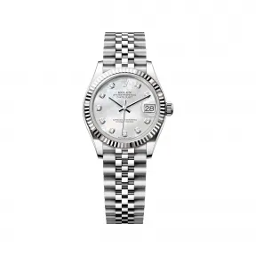 表盘设有18K金底座镶托钻石。珍珠母是神秘魅力与愉悦惊喜的象征。根据不同来源,珍珠母可能是粉红色、白色、黑色或黄色。它的色泽深浅及结构亦可按在贝壳哪部分取出而有别。劳力士决不选用人工着色的珍珠母。相反,品牌工匠凭借非凡精湛的技艺,为珍珠母绽放其天然美态及保留原有的色泽。每枚珍珠母表盘均独一无二,与众不同。表盘设有18K金底座镶托钻石。珍珠母是神秘魅力与愉悦惊喜的象征。根据不同来源,珍珠母可能是粉红色、白色、黑色或黄色。它的色泽深浅及结构亦可按在贝壳哪部分取出而有别。 劳力士决不选用人工着色的珍珠母。相反,品牌工匠凭借非凡精湛的技艺,为珍珠母绽放其天然美态及保留原有的色泽。每枚珍珠母表盘均独一无二,与众不同。|劳力士三角坑纹为品牌腕表的特色。最初,蚝式腕表外圈上的三角坑纹具备实际用途,有助将外圈旋紧固定在表壳上,确保腕表的防水性能。而底盖上可见的坑纹设计亦出于同样目的,并以特定的劳力士工具旋紧于表壳。及后,三角坑纹演变为一项美学设计元素,堪为劳力士的经典特色。时至今日,三角坑纹成为品牌腕表的特色,这款日志型 31的外圈以金制成。劳力士三角坑纹为品牌腕表的特色。最初,蚝式腕表外圈上的三角坑纹具备实际用途,有助将外圈旋紧固定在表壳上,确保腕表的防水性能。 而底盖上可见的坑纹设计亦出于同样目的,并以特定的劳力士工具旋紧于表壳。及后,三角坑纹演变为一项美学设计元素,堪为劳力士的经典特色。时至今日,三角坑纹成为品牌腕表的特色,这款日志型 31的外圈以金制成。|金,亮丽高贵,教人着迷。钢,坚固无比,可堪信赖。两者和谐融汇,与其他特性巧妙结合。金钢是劳力士的标志特色,早于1930年代初已配置在劳力士表款之中,至1933年正式注册商标名称。这亦是蚝式恒动系列其中一个显著的特征。金,亮丽高贵,教人着迷。钢,坚固无比,可堪信赖。两者和谐融汇,与其他特性巧妙结合。 金钢是劳力士的标志特色,早于1930年代初已配置在劳力士表款之中,至1933年正式注册商标名称。这亦是蚝式恒动系列其中一个显著的特征。|劳力士表带与带扣的设计、开发和生产过程,以及需通过的严格测试均充分应用了先进科技。有如腕表的其他组件,表带与带扣同样会经过专人检视,确保出品美观无瑕。这款灵活舒适的五格链节纪念型(Jubilee)金属表带,特别为1945年面世的蚝式恒动日志型腕表而设,劳力士表带与带扣的设计、开发和生产过程,以及需通过的严格测试均充分应用了先进科技。 有如腕表的其他组件,表带与带扣同样会经过专人检视,确保出品美观无瑕。这款灵活舒适的五格链节纪念型(Jubilee)金属表带,特别为1945年面世的蚝式恒动日志型腕表而设,|小窗凸透镜不仅是劳力士腕表的一大特色,且易于识别。小窗凸透镜的名字源于希腊神话的独眼巨人。此装置将腕表标志的日历显示放大,让人一目了然。一如劳力士腕表的其他特色,小窗凸透镜是多年研发创新的成果,体现品牌力求完善的精神。小窗凸透镜不仅是劳力士腕表的一大特色,且易于识别。 小窗凸透镜的名字源于希腊神话的独眼巨人。此装置将腕表标志的日历显示放大,让人一目了然。一如劳力士腕表的其他特色,小窗凸透镜是多年研发创新的成果,体现品牌力求完善的精神。|新一代2236型自动上链机械机芯全由劳力士研发制造。机芯内置劳力士专利Syloxi硅游丝,确保腕表具有超卓天文台精密时计性能。Syloxi游丝不受磁场干扰,即使面对温度变化,依然极为稳定,其抗震力更比传统游丝高出十倍。其专利几何结构使机芯在任何位置都可保持规律运行。新一代2236型自动上链机械机芯全由劳力士研发制造。机芯内置劳力士专利Syloxi硅游丝,确保腕表具有超卓天文台精密时计性能。 Syloxi游丝不受磁场干扰,即使面对温度变化,依然极为稳定,其抗震力更比传统游丝高出十倍。其专利几何结构使机芯在任何位置都可保持规律运行。 表壳:蚝式,31 MM,白色黄金及蚝式钢|蚝式表壳结构:一体成型中层表壳,旋入式底盖及上链表冠|直径:31 MM|材质:白色黄金钢(蚝式钢与白色黄金的组合)|外圈:三角坑纹|上链表冠:旋入式,双扣锁双重防水系统|镜面:防刮损蓝水晶,小窗凸透镜放大日历|防水深度:防水深达100米/330英尺||机芯机芯:自动上链机械恒动机芯|机芯型号:劳力士2236型机芯|精准:每天平均正负两秒以内(机芯装进表壳后)|功能:中央时、分及秒针;快调瞬跳日历;秒针暂停功能以准确调校时间|游丝摆轮组件:专利几何结构Syloxi硅游丝;高性能Paraflex缓震装置|上链:藉恒动摆陀双向自动上链|动力储备:约55小时||表带表带:纪念型(Jubilee),五格链节|材质:蚝式钢|带扣:隐蔽式摺叠皇冠带扣||表盘表盘:白色珍珠母,镶钻石|宝石镶嵌:18K金,镶钻石||认证认证:超卓天文台精密时计认证:瑞士天文台认证(COSC)+ 劳力士认证(机芯装进表壳后)||