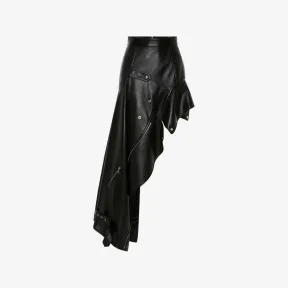 亚历山大麦昆/Alexander McQueen 女式黑色不对称垂坠机车皮裙 746445Q5ALD1000 的视频