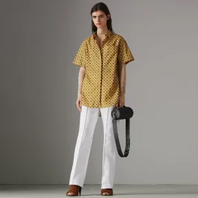博百利/Burberry 女士 短袖典藏砖式印花棉质衬衫 (黄色) 80025901 的视频