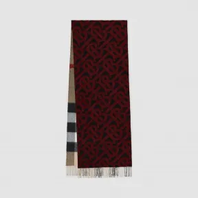 博百利/Burberry 男士 双面两用格纹拼专属标识羊绒围巾 (亮红色) 80224081 的视频