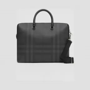 博百利/Burberry 大号 London 格纹拼皮革公文包 (深炭灰) - 男士 80139861 的视频