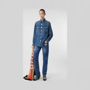 博百利/Burberry 徽标嵌花牛仔衬衫 (靛蓝) - 女士 80252531 的视频