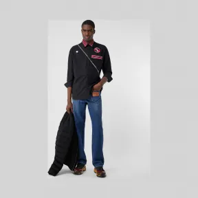 博百利/Burberry 徽标图案棉质宽松牛津衬衫 (黑色) - 男士 80248581 的视频