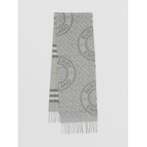 博百利/Burberry 双面两用格纹拼专属标识羊绒围巾 (浅灰色) 80452421 的视频
