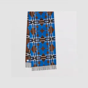 博百利/Burberry 几何格纹羊绒提花围巾 (桦木棕 / 蓝色) 80497071 的视频