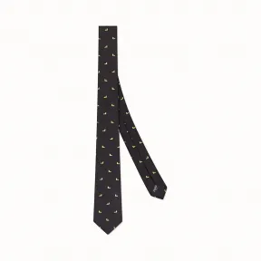 真丝领带。宽 6.5 厘米。黑色真丝斜纹材质。全幅荧光黄微型Bag Bugs印花。意大利制造