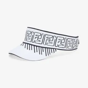 白色Lycra®材质遮阳帽。边缘和细节采用撞色图形轮廓所标记,构成二维效果。凸纹压花FF图案。意大利制造