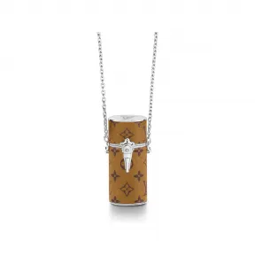 Monogram Reverse 帆布金属链条行李箱锁扣顶部镂刻 LV Circle 标识网站中的信息可能存在技术失准、色差、尺码误差或因产品改良,生产批次等因素造成的细节误差,网站展示的产品图片可能与实际外观不一致。如有相关问题,请致电顾客服务中心。此款口红盒重塑 1920 年代的化妆盒造型:Monogram 帆布勾勒其装饰艺术轮廓,路易威登经典行李箱的特征于锁扣中描摹呈现,LV Circle 标识则雕琢于顶部。本款优雅小巧的口红盒可作配饰单独佩戴,亦可挂在心爱包袋外作装饰。