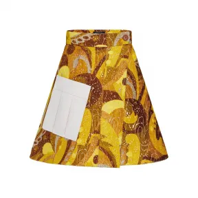 本款迷你裙采用提花工艺营造佩斯利印花的迷幻旋涡,一展 1970 年代的时尚精神;大号贴袋描绘鲜明反差,顺应裹身线条斜向延伸。熨烫褶线维持裙身结构,精巧按扣实现便捷开合。