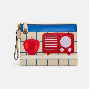 *精选专门店 香港美丽华广场/香港国际金融中心商场/澳门四季名店 限定贩售。Coach 推出此灵感来自普普艺术的趣味联名系列,向纽约传奇艺术家 Tom Wesselmann 致敬。本款收纳空间宽敞的手腕包是以极为柔软的棒球手套鞣制皮革打造而成,缀有风格独特的厨房静物图样。手腕包能容纳一台 9.7 寸的 iPad,采用拉链与转扣闭合设计,能安全收纳小型随身物品。 关於艺术家:Tom Wesselmann 的作品以鲜艳浓郁的色彩见长,画作的规模都比实物还要巨大,他被视为二十世纪最活跃、最有生命力的其中一位美国艺术家。Wesselmann 抗拒抽象的表现主义,选择以鲜明抢眼的方式来描摹女性躯体、静物以及风景,特别喜欢探索日常生活中不平凡的细节。 | 棒球手套鞣制皮革| 内部拉链闭合插槽| 顶部拉链闭合设计、布面衬里| 可拆卸式手腕带| 长30公分 x 高22公分 | 可容纳 9.7 寸之 iPad 或 iPad Pro| Coach x Tom Wesselmann| © 版权归 Tom Wesselmann 所有,由纽约 Artestar 授权