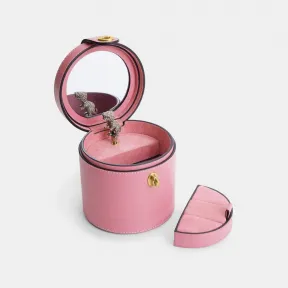 这款怀旧风格的珠宝盒致敬了品牌传承,通过品牌最初的精神获得重新诠释。采用标志性的棒球手套鞣制皮革制作,配有安全的旋锁扣件,盒内带有一个点缀了密镶仿水晶的可旋转Coach吉祥物Rexy,它伴随着柴可夫斯基的《花之华尔兹》翩翩起舞。内衬为奢华的超细纤维面料,配备了一个开放式底部隔层以及一个可拆卸的戒指和耳环嵌件。提供礼盒包装,这款值得收藏的礼物是收纳你个人珍贵物品的出色之选。 牛皮革|内置镜子|旋锁开合,织物衬里|垂直长度5cm顶部手柄|11.5cm (长) x 10.5cm (高) x 11.5cm (宽)|采用Coach礼盒包装