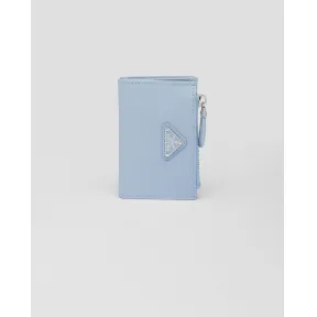 Refined card holder with a modern design in Saffiano leather decorated with the iconic enameled metal triangle logo, which first appeared on trunks designed by Mario Prada in 1913. Product code: 1MC085_QHH_F0EMZ| Snap closureEnameled metal triangle logoOne card slotOne internal pocketInternal zipper coin compartmentOne external pocketMoiré and Saffiano leather lining| Manufacturer name: Prada SpA| Importer name: Prada Korea LLC| We recommend taking special care of this item. For care instructions, please refer to the FAQ. Warranty period of 1 years. Please refer to Terms and Conditions for more details. For country of manufacturing, please refer to the FAQ| Height: 7cm| Width: 10cm|