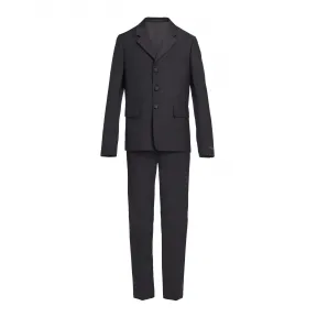 This extra-slim fit wool and mohair suit has sartorial allure and is decorated with silk faille tuxedo details. The single-breasted jacket has three buttons and classic lapels. The trousers have pockets on the front and back. Product code: UAM494_P55_F0002_S_202| Extra-slim fit| Sartorial tailoring| Classic lapels| Jacket with three-button closure| Back vent| Flap pockets| Lined| Cuffs with 4 buttons| Sartorial label| Silk faille tuxedo details| Trousers with zipper fly| Angled slash pockets on the front| Welt pockets with hidden buttons on the back| 20 cm hem width| Flat-pressed sleeves and lapels| Height: 72cm| The model is 188 cm tall and wears a size 48 - M|