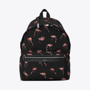 伊夫圣罗兰/Yves Saint laurent 黑色和粉色火烈鸟印花尼龙帆布和黑色真皮 CITY 背包 465448GWO1 的视频