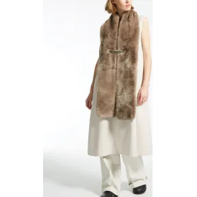 兔子皮草围巾,饰有刺绣棉缎带细节和内部衬里。
