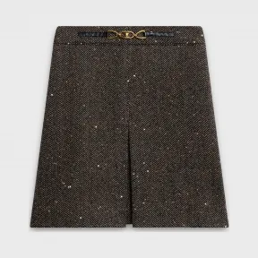 思琳/Celine 女士 亮片人字纹粗花呢缩褶半身裙 2J121235G.24BJ 的视频