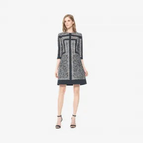氯丁面料金属绣花装饰3/4袖廓型连衣裙 AQG15035MH-ST-BK 的视频