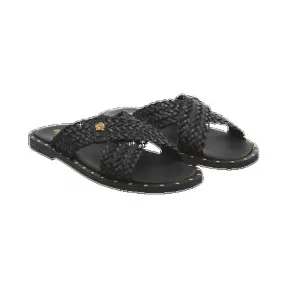范思哲/Versace 小牛皮梭织凉拖鞋 - 黑色+金色 凉鞋 DSU5959-DVG3C_D41OH 的视频