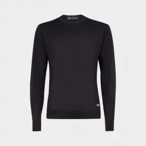 范思哲/Versace 圆领羊毛针织衫 - 黑色 针织衫 A69777-A222443_A008 的视频