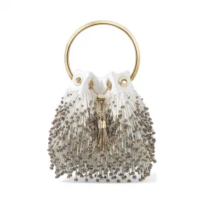 Jimmychoo/吉米周 流苏珠饰拿铁色拼钢紫色缎面金属手提带手提包 BONBONFSB0C7999 的视频