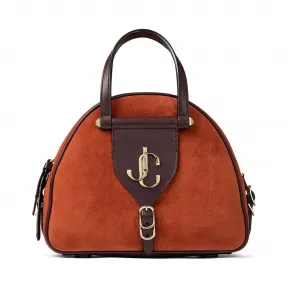 Jimmychoo/吉米周 品牌logo装饰锈红色麂皮拼紫色植鞣皮保龄球包 VARENNEBOWLINGSSDV0C7754 的视频