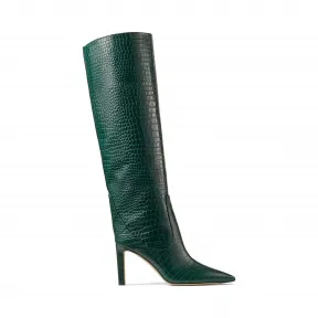 Jimmychoo/吉米周 深绿色鳄鱼压纹皮及膝靴 MAVIS85CCL031838 的视频