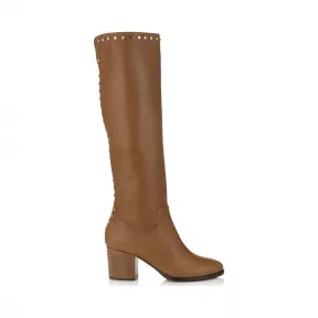 Jimmychoo/吉米周 卡其色棕色光滑皮革及膝高筒靴,饰有饰钉 MONROE65OST025816 的视频
