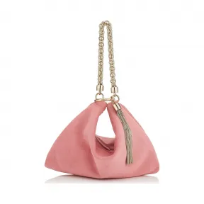 Jimmychoo/吉米周 棉花糖粉色麂皮链条肩带手拿包 CALLIESUE112204