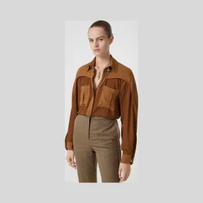 博百利/Burberry 披肩袖双色丝质衬衫 (红褐色) - 女士 80241101 的视频