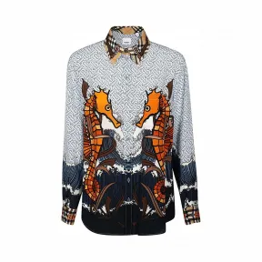 博百利/Burberry 专属标识拼海马印花丝质衬衫 (婴儿蓝) - 女士 80245871 的视频